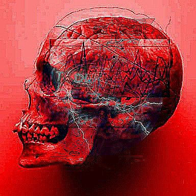 Anyway, this is a photoshop piece that contains pictures of a skull, a brain, a printout of my own brain waves, lightning, a jackhammer, and, if you look closely, the phrases, "OWW," "shut up," "you don't get it," and "turn those @#$%ing lights off" scrawled in migraine handwriting.